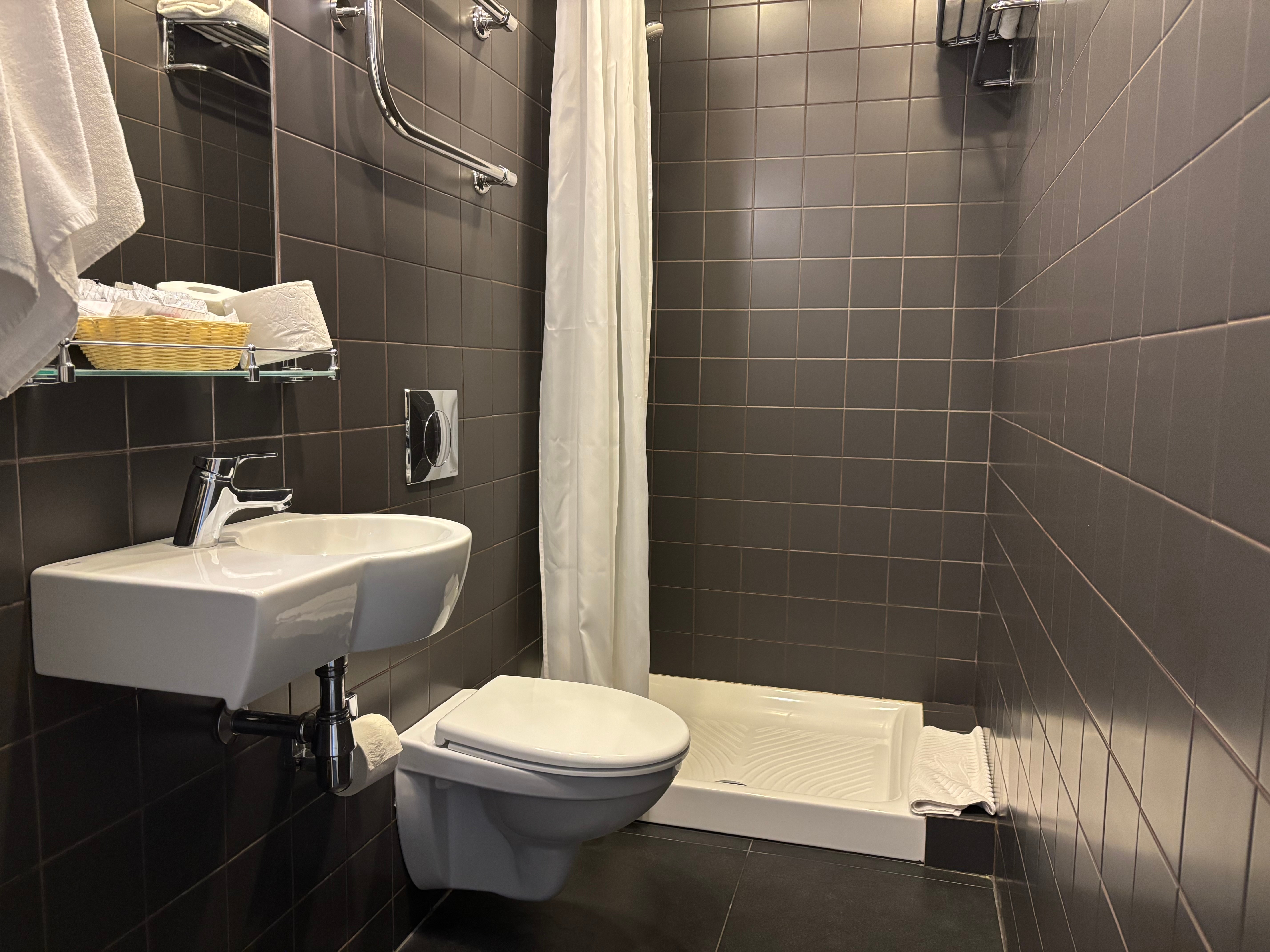 Душевая комната совмещена с санузлом, полотенца, аксессуары гостеприимства.